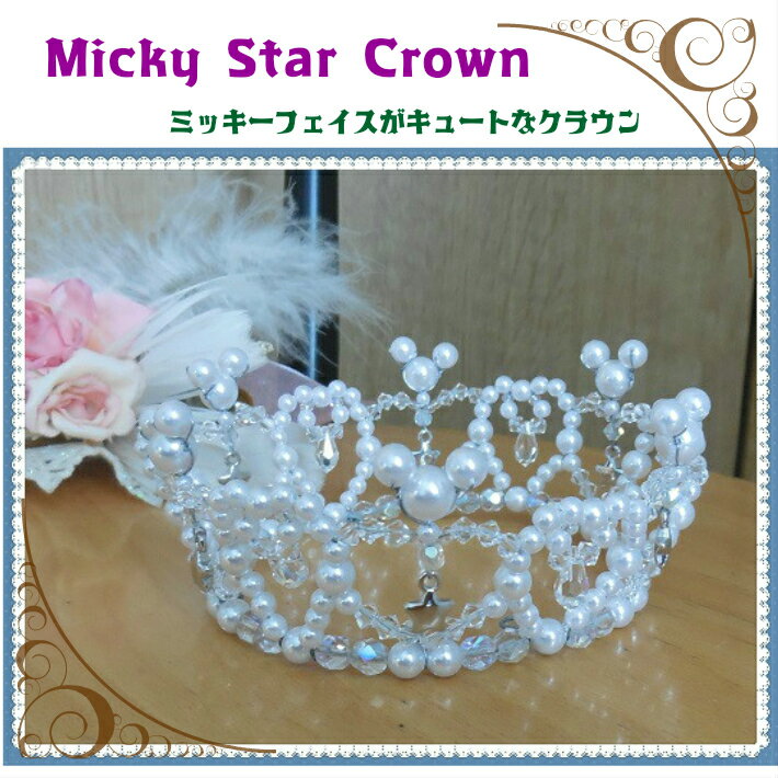 大小の真珠3個でミッキーフェイスを作ったロマンティックなクラウンです。